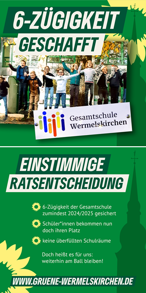 Leider bleibt ein Wermutstropfen. Die grundsätzliche 6-Zügigkeit, die bei Betrachtung der Zahlen aus dem Schulentwicklungsplan notwendig wäre und von uns gefordert wird, ist noch nicht beschlossen.
