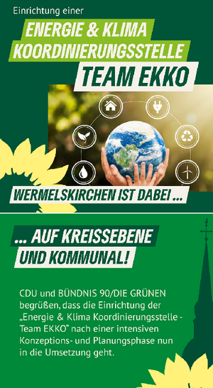 Abgerundet wird das künftige Angebot von EKKO durch Informationsveranstaltungen und Themenabende u.a. in den Bereichen energetische Sanierung von Gebäuden, Heizungstausch oder auch Umgang mit Folgen des Klimawandels.